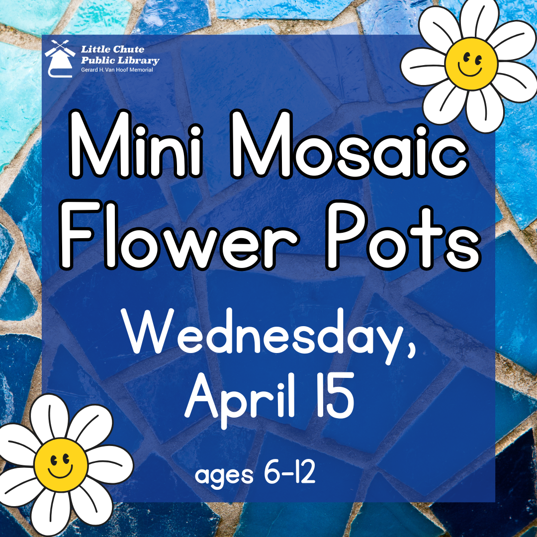 Join us after your school day and make a mini mosaic flower pot on Wednesday, April 15 anytime between 2:00-4:30 PM. Best for ages 6-12.