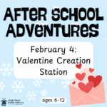Join us between 2:00-5:00 PM for hands-on crafts and activities! Best for ages 6-12. February 4: Valentine Creation Station (room S2/S3 of the Civic Center) February 18: Build-A-Palooza (in the library) , ... - 19Comic Club4:00 pm